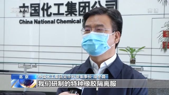 中國(guó)化工集團(tuán)昊華科技董事長(zhǎng) 胡冬晨:我們研制的橡膠隔離服經(jīng)過(guò)消毒殺菌后,可反復(fù)使用5~30次不等,目前隔離服日產(chǎn)能達(dá)到2500套。