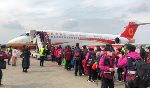 2月18日-21日,民航局組織協(xié)調第八批包機緊急運輸醫(yī)療隊,共組織78架包機運輸全國各地近8000名醫(yī)護人員和部分醫(yī)療物資馳援湖北各地。其中,成都航空連續(xù)派出4架國產ARJ21支線客機執(zhí)飛成都—武漢的四川省醫(yī)療支援隊包機,并由民航西南地區(qū)管理局黨委書記劉軍、民航四川監(jiān)管局副局長孫文勝等執(zhí)飛,這也是國產客機首次助力抗擊疫情的包機任務。