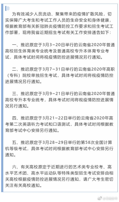 2020-02-22 08:54:39 來源:云南省招生考試院