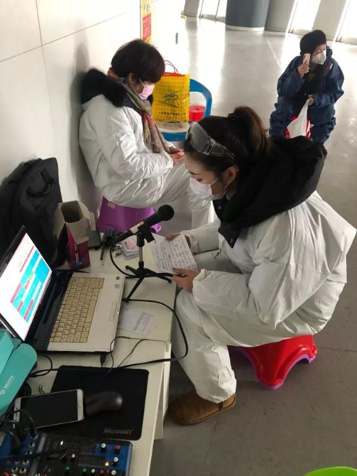 華雨辰正在給乘客測體溫 |圖自志愿者李濤