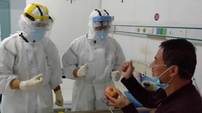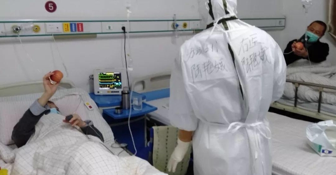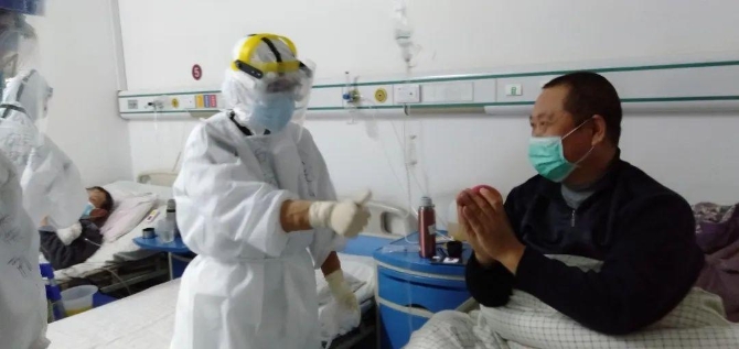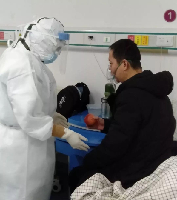 醫(yī)護人員對病人的照顧無微不至,當聽到有病人說好久沒能吃到水果時,醫(yī)療隊的隊員就把酒店給自己的餐后蘋果節(jié)省下來,拿到隔離病區(qū)分發(fā)給病人。 ?