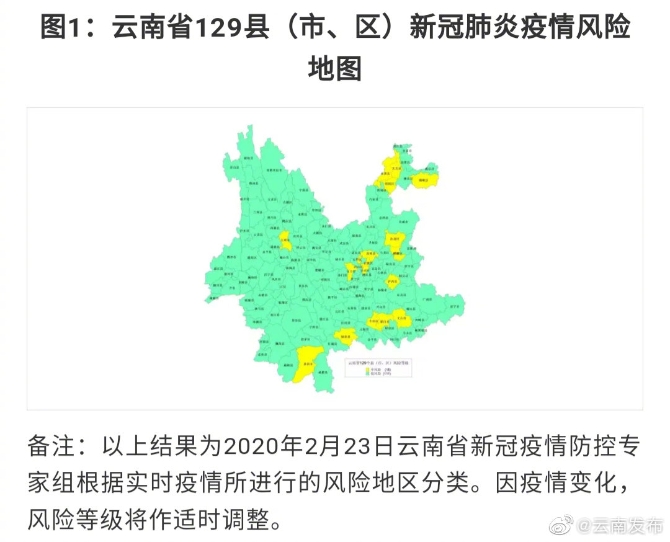 據(jù)中共云南省委、云南省人民政府應(yīng)對(duì)新型冠狀病毒感染肺炎疫情工作領(lǐng)導(dǎo)小組指揮部第10號(hào)通告《云南省應(yīng)對(duì)新冠肺炎疫情分區(qū)分級(jí)防控的實(shí)施意見(jiàn)》,因疫情變化,風(fēng)險(xiǎn)等級(jí)將作適時(shí)調(diào)整。(云南省衛(wèi)生健康委員會(huì))