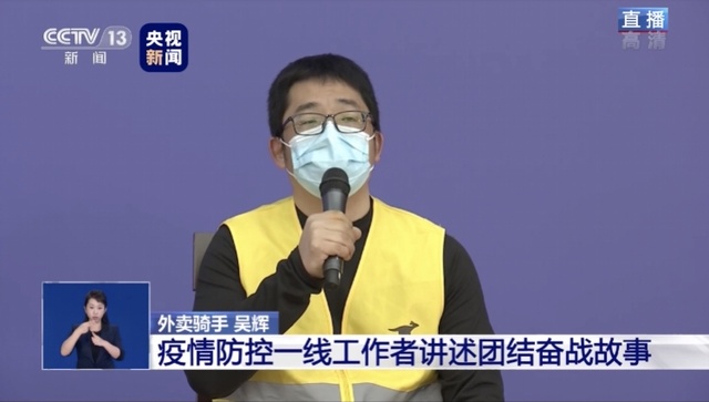 1月26日,吳輝接到一單跑腿幫送,備注里寫著:“媽媽做的飯給爸爸送去,爸爸是前線醫(yī)生,辛苦外賣小哥了。”那一刻,吳輝想要流淚。