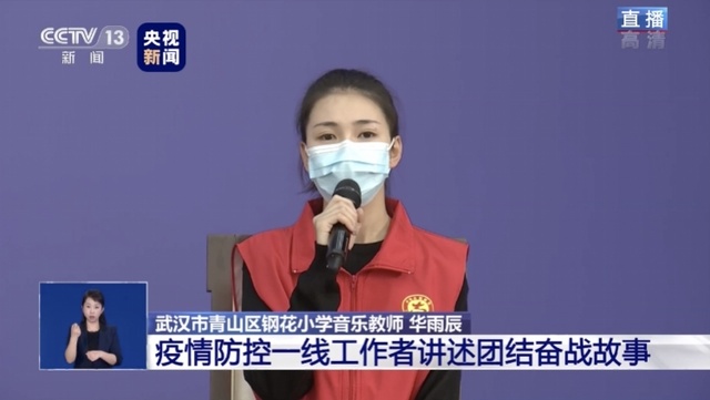 武漢市青山區(qū)鋼花小學(xué)音樂教師華雨辰是“全能志愿者”,司機(jī)、搬運(yùn)工、體溫檢測員、方艙醫(yī)院播音員,只要有需要,她都能立即頂上。