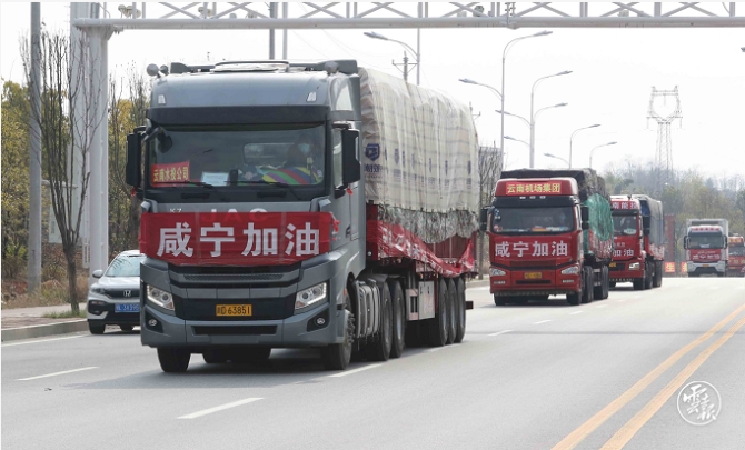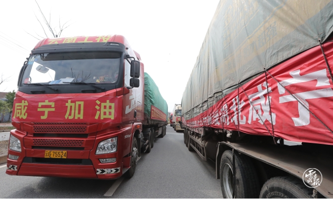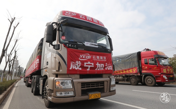 23日上午10點10分,云南54輛裝滿2842萬元物資的貨車緩緩駛入咸寧高速馬橋收費站,愛心車隊出收費站時,執(zhí)勤點民警自發(fā)列隊敬禮……這支云南援助咸寧物資車隊于21日下午15時從昆明出發(fā),日夜兼程奔波2000公里,安全抵達咸寧。