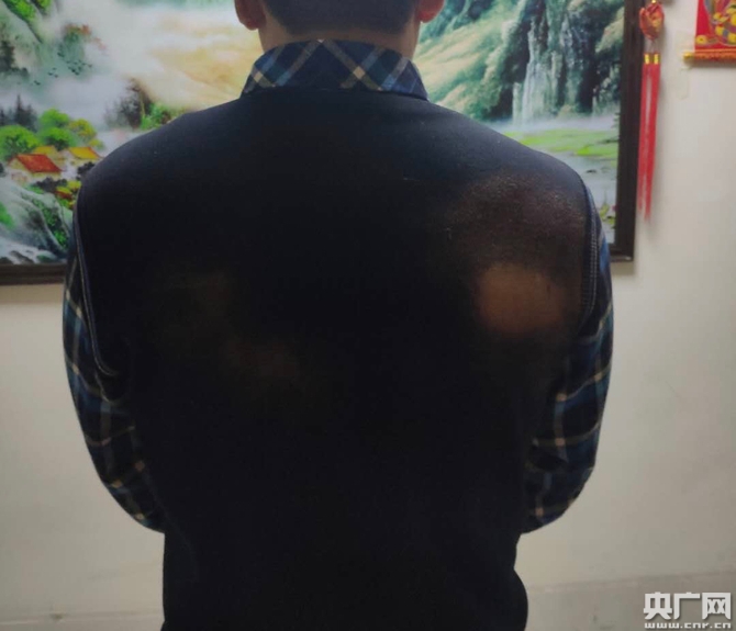 衣服被藥水燒白了,后背也破皮了