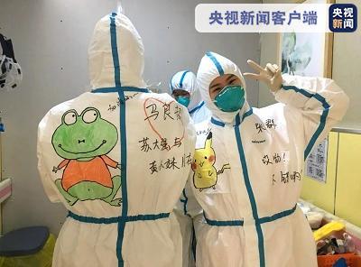 孩子們在病房里看到身穿防護服、戴著護目鏡,像“外星人”一樣的醫(yī)生,往往會心生恐懼,哭鬧起來,很不配合治療。為了減少孩子們對隔離服的畏懼心理,能夠輕松地和叔叔阿姨們相處,南京市兒童醫(yī)院援助黃石醫(yī)療隊的隊員和黃石市婦幼保健院的醫(yī)護人員這些天來幾乎都練成了“畫家”,他們在所有的隔離服上畫滿一幅又一幅可愛的卡通漫畫。(總臺央視記者 吳睿 于露露)