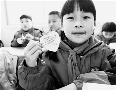 小學生志愿者把自己對志愿服務(wù)的感悟?qū)懺诩埳稀P氯A社發(fā)