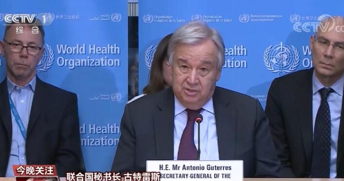 2月24日,聯(lián)合國秘書長古特雷斯到位于日內瓦的世界衛(wèi)生組織總部了解新冠肺炎疫情情況。他呼吁各國盡全力應對疫情,并表達了對中國人民的感謝之情。