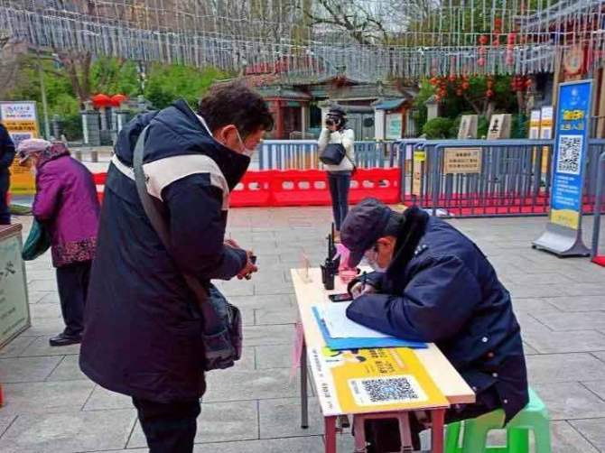 15、疫情防控期間,游客服務(wù)(咨詢)中心靠前服務(wù),在門口為游客提供咨詢接待。