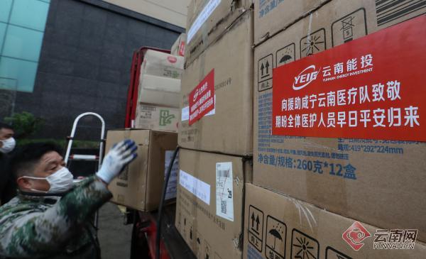 此次車隊的負責(zé)人劉旺告訴記者,在這批18輛貨車物資中,包括生活用品和部分醫(yī)療醫(yī)用物資。為了盡早送達咸寧,他們?nèi)找辜娉虄商旒皶r將這些物資送到咸寧。記者了解到,這些物資是國資委繼前一批54輛貨車送來之后,第二批送來咸寧的物資,除了生活用品還有包括防護服、消毒液在內(nèi)的一批醫(yī)用物資。其中,云南能投集團捐贈的物資價值296萬,這是繼2月21日云南能投首批180萬元捐贈物資發(fā)出后的第二批物資,包括84消毒液64.8噸、醫(yī)療物資2467件、食鹽45噸、食品13108件。云南能投為了表達對一線醫(yī)護工作人員的敬意和謝意,還專門為云南支援湖北醫(yī)療隊籌備了4175件保障物資,支持云南最美“逆行者”。記者注意到,在國資捐贈的這批物資中,還有“馬老表”過橋方便米線?!拔覀冊颇厢t(yī)療隊到達湖北支援疫區(qū)一個月了,我們送點米線去,也是讓我們敬愛的醫(yī)療隊員感受家鄉(xiāng)的味道和家鄉(xiāng)人民的惦記?!蹦芡兑晃回撠?zé)人告訴記者。