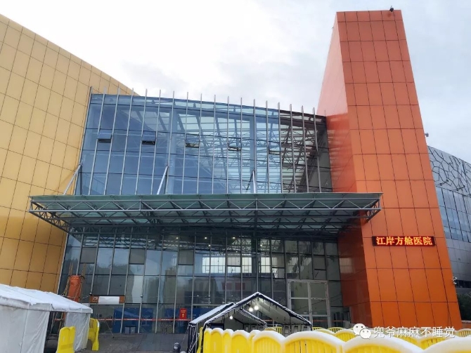 塔子湖方艙即江岸方艙,是由塔子湖體育館改造的,可以容納1000人。