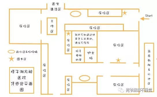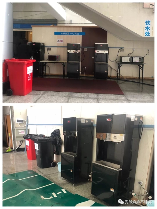 再往前走,靠近護士工作站,右手邊是一排開水機和微波爐,還有分類垃圾桶。(平面圖橢圓標(biāo))