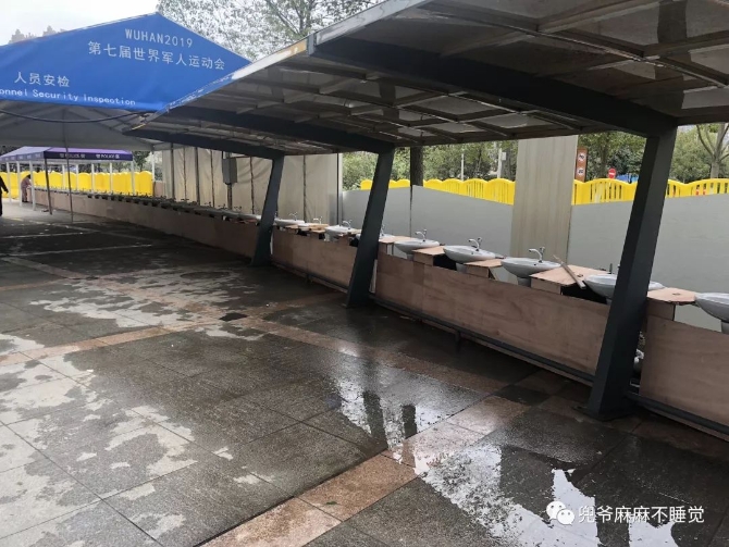 從A區(qū)出去就是簡易移動廁所和洗臉池。