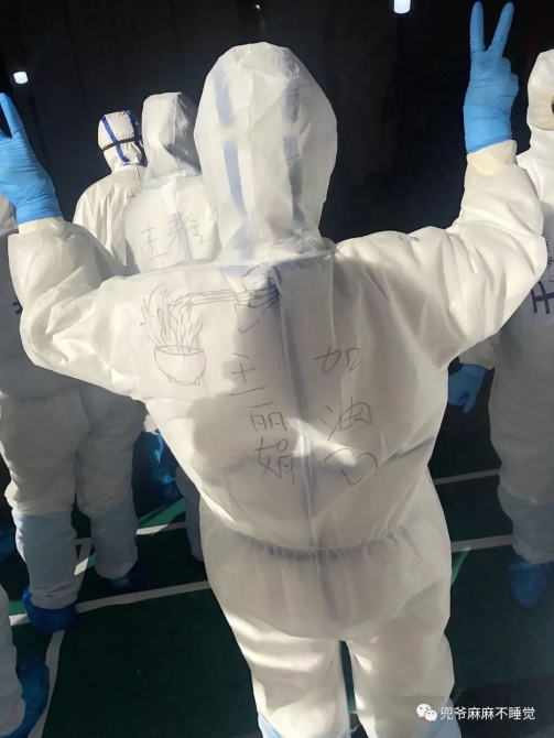 每個醫(yī)護人員都在外層防護服的胸前或者背后用筆寫上來自的地區(qū)和醫(yī)院名,是醫(yī)生還是護士,以及自己的姓名。