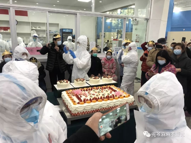 17日的中午,在天津醫(yī)護團隊的策劃下,在這個特殊時期,在方艙這個特殊環(huán)境下,一場生日聚會隆重舉行了,壽星們是全艙2月份生日的病友。