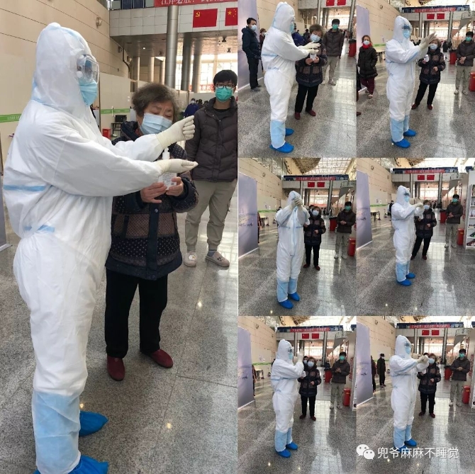 截至發(fā)文的時候,我才知道塔子湖方艙二樓的病區(qū)開放了,從進來到現(xiàn)在一直負責(zé)我們區(qū)域的天津的醫(yī)護們都調(diào)到二樓去了,大家都非常非常舍不得。
