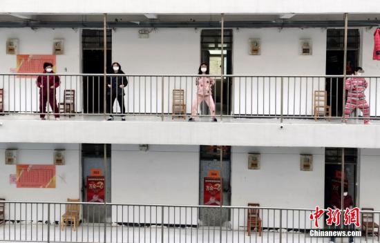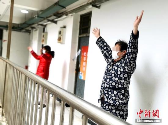 中新社武漢2月29日電 記者楊程晨 29日中午,作為康復(fù)期患者隔離點(diǎn)的武漢軟件工程職業(yè)學(xué)院5棟宿舍樓響起了音樂(lè),人們戴上口罩走出房門(mén),站在“口”字型走廊上練起八段錦和太極拳。