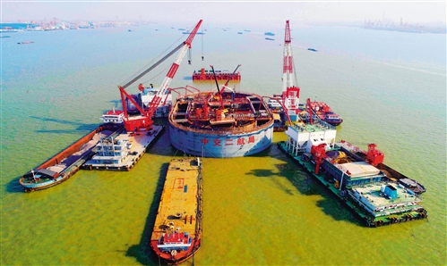 2月22日,位于江蘇省泰州市常泰長江大橋第5號墩鋼沉井建設(shè)工地,中交二航局建設(shè)者在對5號墩鋼沉井夾壁進行混凝土澆筑。常泰長江大橋是世界上首座集高鐵、普通公路、高速公路“三位一體”的大橋。 顧繼紅攝