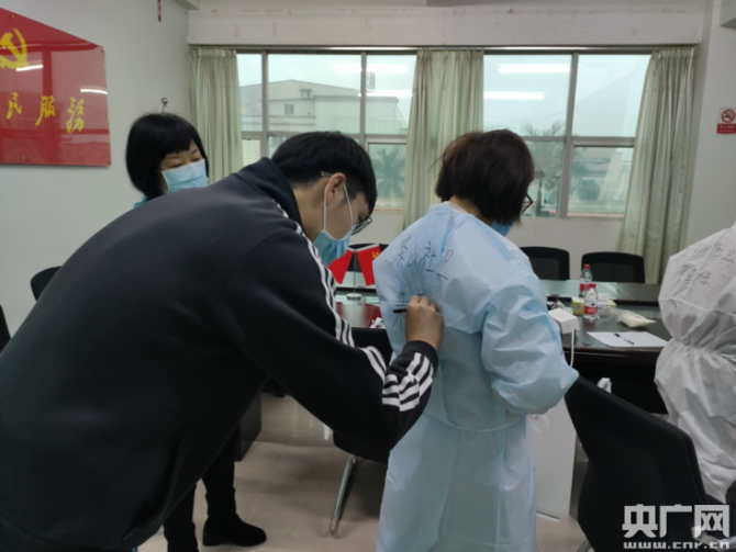 余昆哲協(xié)助社區(qū)隨訪(fǎng)工作人員穿防護(hù)服