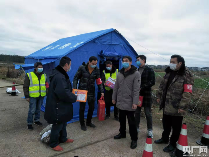 楊洋(右二)為家鄉(xiāng)捐贈(zèng)防疫物資