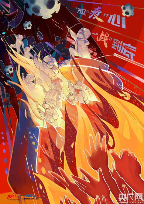 面對(duì)疫情,新聞學(xué)院的李雨晴用自己獨(dú)特的方式參與戰(zhàn)“疫”,設(shè)計(jì)海報(bào)傳遞戰(zhàn)“疫”精神。在了解了不同行業(yè)、不同年齡、不同地域的人們一起努力共同戰(zhàn)“疫”的事跡后,李雨晴產(chǎn)生了她的創(chuàng)作靈感——“與疫情戰(zhàn)斗的道路并不平坦,各種因素總是在阻礙我們的腳步;但是,總有很多人在前線(xiàn)奮斗,使希望留存。”從她設(shè)計(jì)的海報(bào)中人物造型有很多,醫(yī)護(hù)人員沖鋒在前,其他各行各業(yè)的人們?cè)诤蠓街С??!拔蚁Mㄟ^(guò)海報(bào)表達(dá)所有人齊心協(xié)力一定能戰(zhàn)勝疫情這個(gè)意思?!睖?zhǔn)00后李雨晴說(shuō)。
