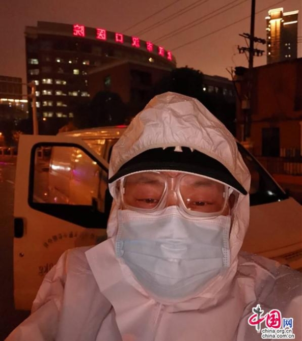 后來,武漢市招募志愿者,要求40歲以下,他今年47歲了,不合符條件。再后來,聽說他所在的武漢市江岸區(qū)永清街道招募轉(zhuǎn)運患者的司機,他立即報了名。