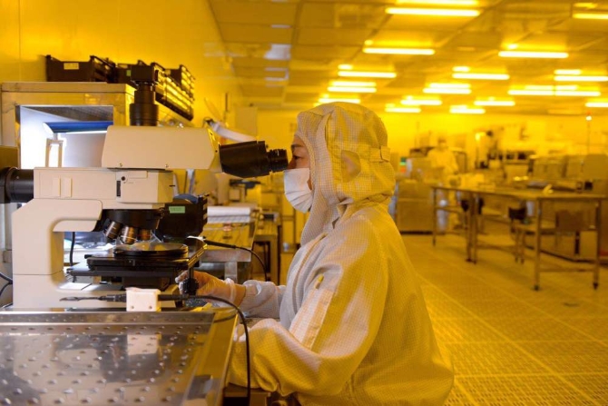 身著防塵衣,戴上口罩,通過電子門嚴(yán)格把守的風(fēng)淋室進(jìn)入超凈生產(chǎn)線,一片片硅片整齊地碼放在設(shè)備上,機(jī)械手將其放入光刻機(jī),電子屏幕上各項(xiàng)參數(shù)閃現(xiàn),科技感十足。