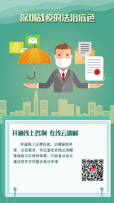 疫情防控期間,深圳開通了線上法律咨詢,法律援助申請、公證服務(wù)、司法鑒定在線云調(diào)解等戰(zhàn)疫不打烊的舉措,行政復(fù)議也可通過郵寄方式提出復(fù)議申請。