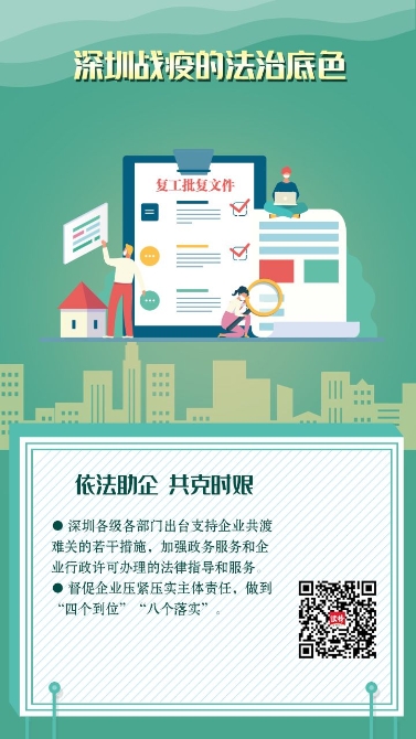 依法助企,共克時(shí)艱。深圳充分用好用足援企穩(wěn)崗政策,各級(jí)各部門先后制定出臺(tái)了支持企業(yè)共渡難關(guān)的若干措施,加強(qiáng)政務(wù)服務(wù)和企業(yè)行政許可辦理的法律指導(dǎo)和服務(wù),依法科學(xué)有力有序推動(dòng)企業(yè)復(fù)工復(fù)產(chǎn)、盡快達(dá)產(chǎn),讓機(jī)器響起來,讓生產(chǎn)線忙起來。同時(shí),督促企業(yè)壓緊壓實(shí)主體責(zé)任,加強(qiáng)疫情防控和安全生產(chǎn),嚴(yán)格落實(shí)崗位責(zé)任制,做到"四個(gè)到位""八個(gè)落實(shí)",努力把疫情對經(jīng)濟(jì)社會(huì)發(fā)展的影響降到最低。