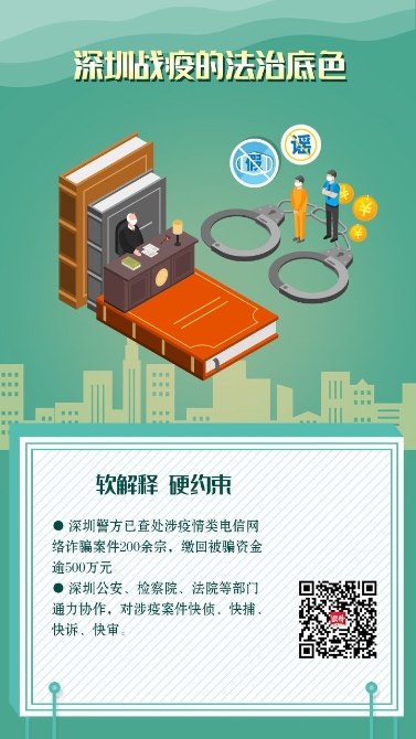 據(jù)統(tǒng)計(jì),疫情防控以來,深圳警方已查處涉疫情類電信網(wǎng)絡(luò)詐騙案件200余宗,繳回被騙資金逾500萬元。與此同時(shí),深圳公安、檢察院、法院等部門通力協(xié)作,對涉疫案件快偵、快捕、快訴、快審。