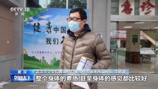 武漢市公安局青山分局新溝橋街派出所副所長 宋曉波:感覺還好,整個身體的素質(zhì),感覺都還好。今天再次看到這些醫(yī)護(hù)人員,很親切。