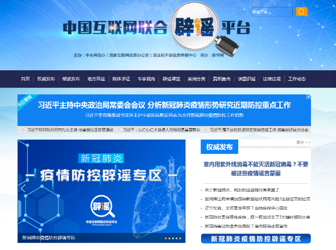 中國互聯(lián)網(wǎng)聯(lián)合辟謠平臺(www.piyao.org.cn)開設“疫情防控辟謠專區(qū)”