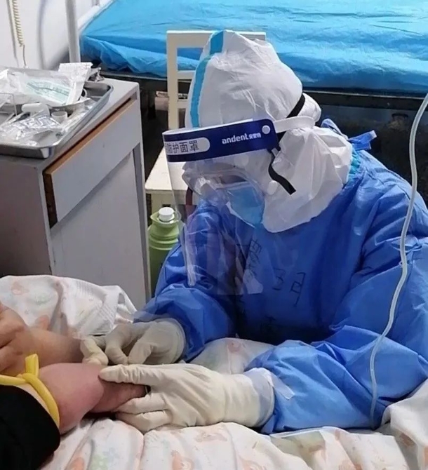前幾天值班時,隱約聽到陣陣哭聲。急忙趕去病房,發(fā)現(xiàn)40床阿姨躲在被子里哭泣。阿姨知道在病房不能大聲哭泣,因為病人大多處于單間隔離,在長期的壓抑下,一點點負面情緒傳出去,都會引起他人共鳴,不利于其他患者的心理康復。聽到我們來了,她起身坐起來,戴上口罩又捂上了嘴巴,盡量控制情緒,但從眼睛里溢出來的難過,還是讓人揪心。大約安撫了20多分鐘后,阿姨慢慢平靜了下來。原來,她本應和今天已出院的9名患者一起撤離,前一天還很開心地跟醫(yī)護人員道謝,結果今早得知,復查的核酸檢測陽性,暫時不能出院了。