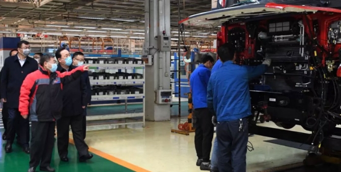 2月19日上午,陜西省委常委、西安市委書記、西安市疫情防控指揮部指揮長王浩到西安經(jīng)開區(qū)檢查吉利、陜汽等開復(fù)工企業(yè)疫情防控工作。(圖片來源:西安市人民政府網(wǎng)站)