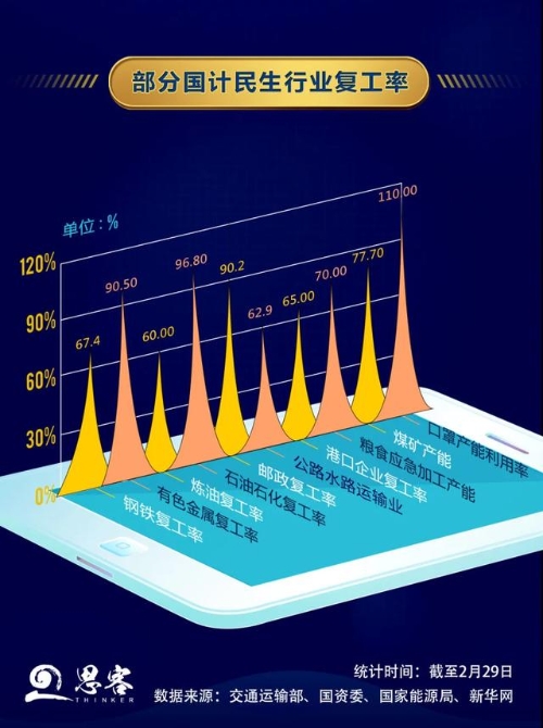 石油石化、通訊、電力、交通運輸等行業(yè)的復工率已經超過95%,有的已經達到100%。央企接近“滿分”的復工率不僅能為戰(zhàn)“疫”和減輕經濟下行壓力提供強有力支撐,還能帶動上下游產業(yè)鏈,為上下游環(huán)節(jié)的中小企業(yè)提供更多發(fā)展機會。