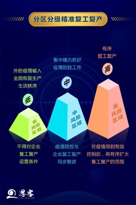統籌疫情防控和復工復產兩條戰(zhàn)線,關鍵在“精準”。連日來,不少省份依據疫情嚴重程度,以縣級為單位劃分為低風險地區(qū)、中風險地區(qū)和高風險地區(qū)三類,分區(qū)分級精準復工復產。這樣的分類指導和精準施策,將有效杜絕那些一關了之、一停了之的做法。