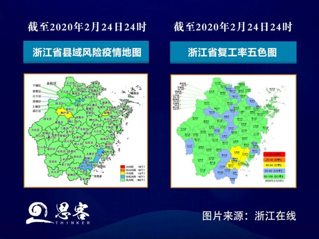 浙江通過繪制規(guī)上企業(yè)復工率五色圖與疫情五色圖的形式“掛圖作戰(zhàn)”,推動復工圖與疫情圖相匹配,這樣的統籌規(guī)劃讓疫情防控和復工復產更科學、更精準。