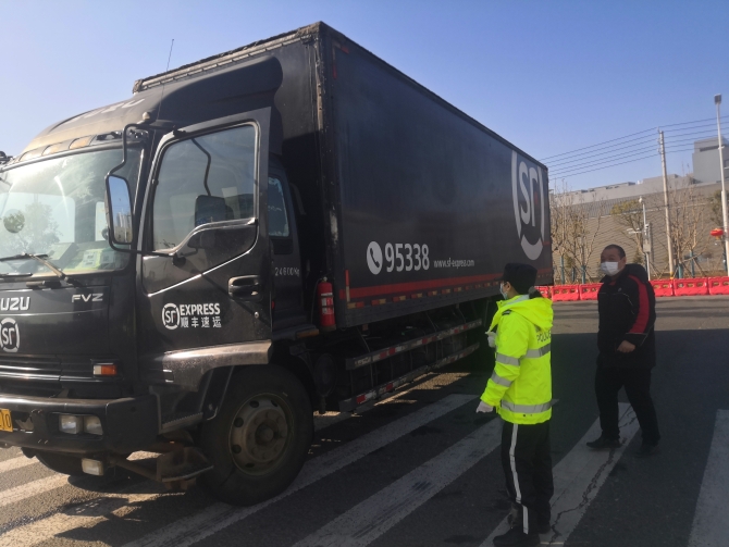 2月底,武漢市公安分局東西湖分局民警正在對物流配送車輛進行檢查。(資料圖片)