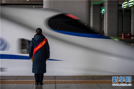 “滇粵勞務(wù)協(xié)作返崗專列”從昆明南站發(fā)車(2月18日攝)。 新華社記者 胡超 攝