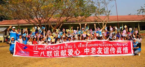 中老鐵路青年志愿者為沿線老撾學校捐贈文具