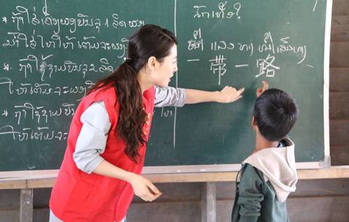 中老鐵路青年志愿者在中老鐵路沿線學校教授漢語