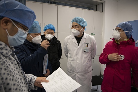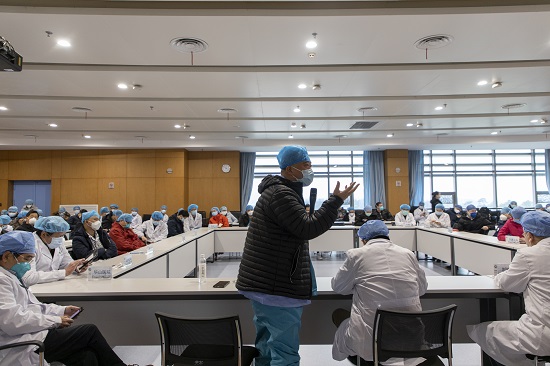 2月28日,早上大換班各病區(qū)負責人對當日情況進行討論。