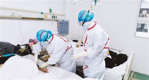 △資料圖:奮戰(zhàn)在武漢金銀潭醫(yī)院的國家中醫(yī)醫(yī)療隊大夫們正在為患者診治。