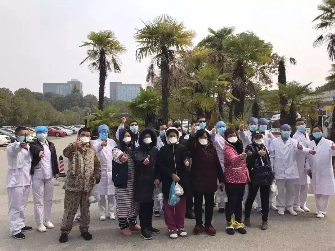 △資料圖:2月6日湖北省中西醫(yī)結(jié)合醫(yī)院18位新冠肺炎患者康復出院