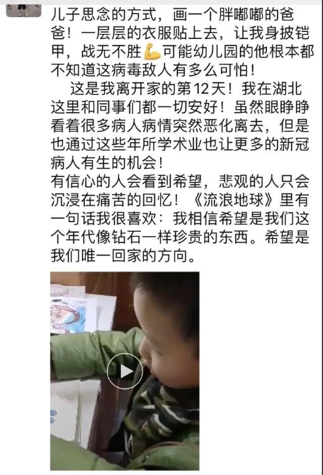 2月24日,是浙江大學(xué)醫(yī)學(xué)院附屬邵逸夫醫(yī)院下沙院區(qū)危重醫(yī)學(xué)科醫(yī)生王長亮,離開妻兒奔赴湖北荊門支援的第12天。一大早,他發(fā)了一個朋友圈狀態(tài),暖“哭”了許多人。