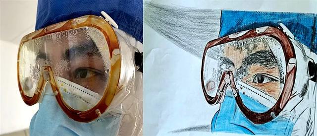 在邵逸夫醫(yī)院援助荊門醫(yī)療隊建起的ICU內(nèi),王長亮需要穿上兩層防護服,一個班下來,防護服下早已汗?jié)竦嗡?。為了讓孩子們了解爸爸的工作狀態(tài),同樣身為醫(yī)生的王長亮的愛人跟孩子們一起畫起了穿著防護服的爸爸。兩個兒子根據(jù)爸爸的“入艙”標配,先畫了一個胖嘟嘟的“爸爸”,然后一層層為他穿上衣服。