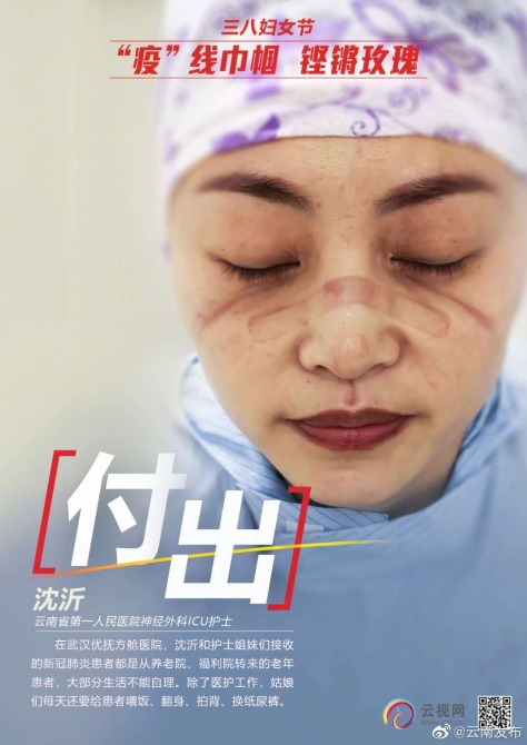 病房就是她們的戰(zhàn)場,救治就是決戰(zhàn)。當(dāng)她們脫下防護(hù)衣,摘下手套口罩時,看到的是布滿皺紋、壓痕的手和臉!今天,節(jié)日更增添一份她們對家的思念。來到這里,她們只是一名普通的戰(zhàn)“疫”隊員,做醫(yī)護(hù)工作者最平凡的事情。