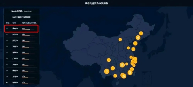 3月3日城市交通活力恢復指數(shù)。來源:滴滴發(fā)布