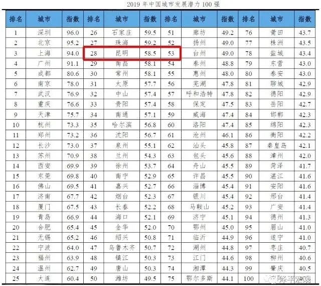 2019年5月,第一財經(jīng)新一線城市研究所發(fā)布“2019城市商業(yè)魅力排行榜”,15個新一線城市排名依次為成都、杭州、重慶、武漢、西安、蘇州、天津、南京、長沙、鄭州、東莞、青島、沈陽、寧波、昆明。昆明擠掉無錫,首次進入排名榜單。當時,有人看到昆明在列后質(zhì)疑:昆明憑什么成為新一線城市?